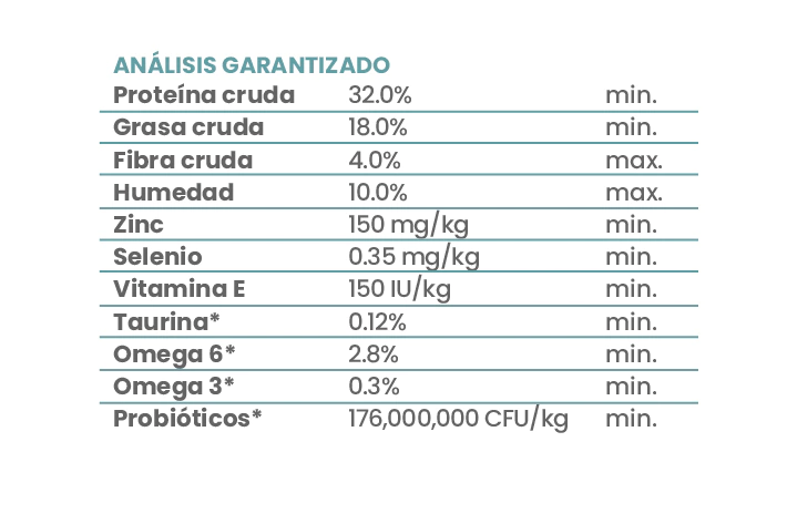 32% proteína, 18% grasa, energía óptima para perros pequeños que son más activos que los grandes.